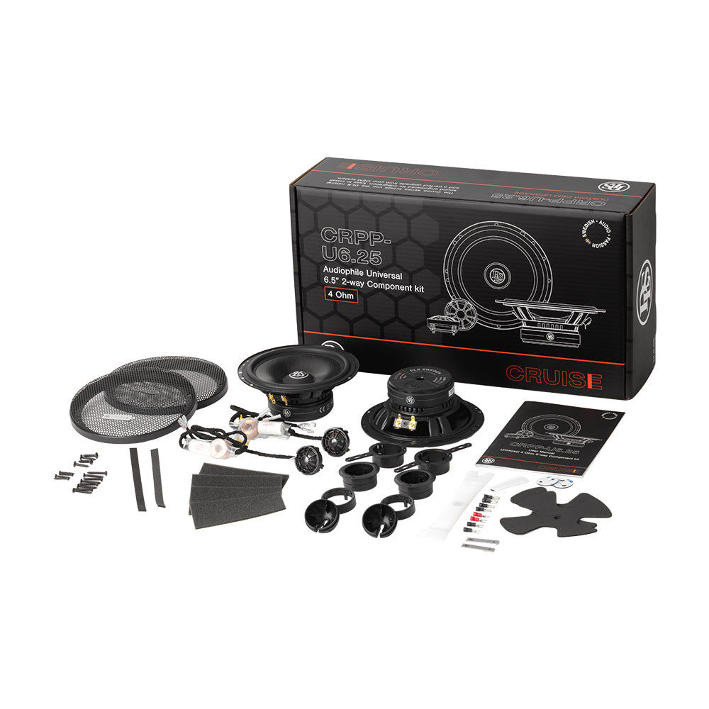 DLS Cruise CRPP-U6.25 er et komplet kitsystem med mellemtone og diskant, bygget til dig der vil opgradere lyden i bilen, én gang for alle. Med en naturlig, klar og dynamisk lyd løfter højtalerne hver tur, uanset hvor kort den er. I kassen finder du CRPP-UW64 og CRPP-UT25, sammen med delefilter med Mundorf-kondensator og sekskantmønstrede gitre til synlig montering i dørside, kickpanel eller boks.