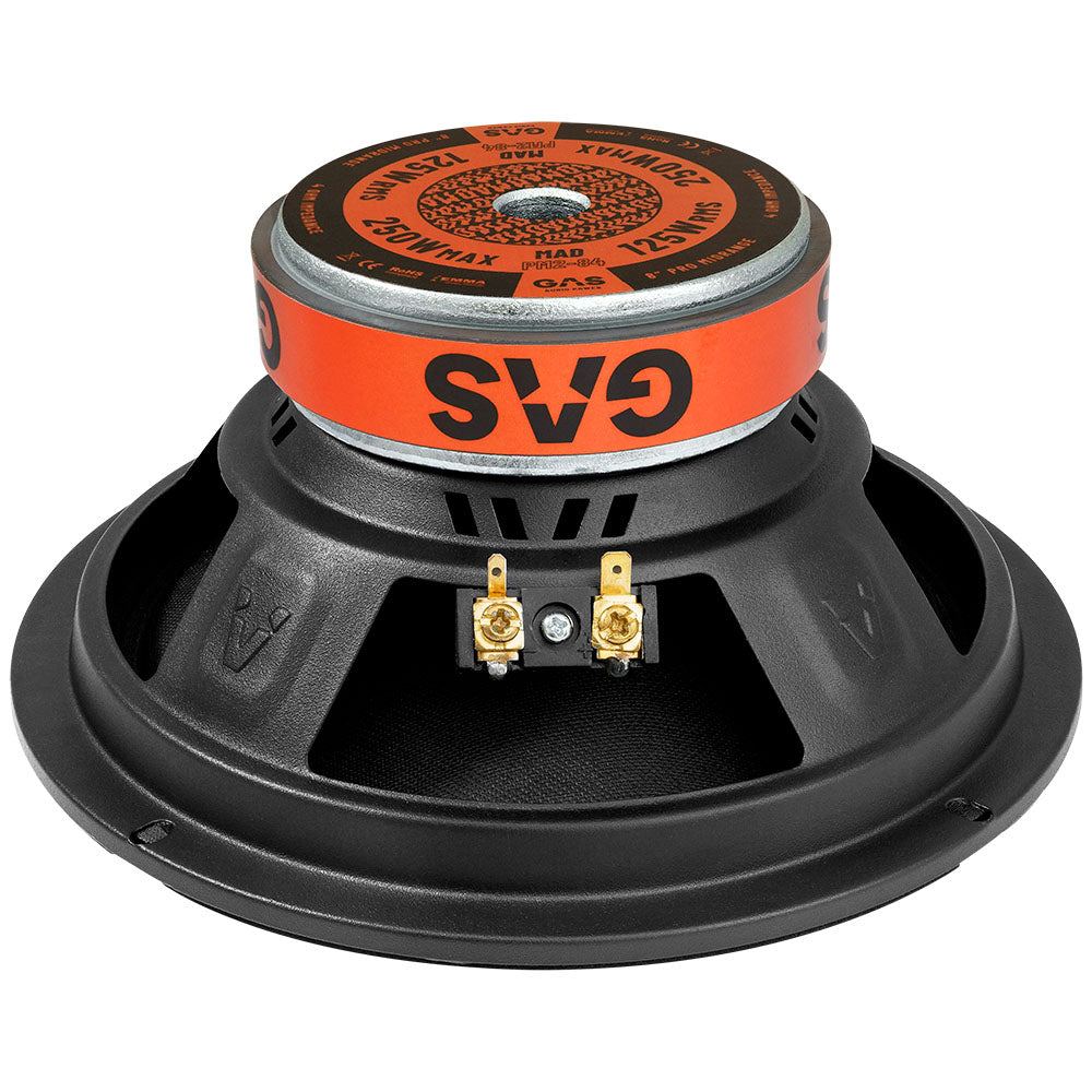 GAS MAD PM2-84 er PM2-seriens større midbaser og erstatter de fantastiske PSM84! Et par ekstremt kapable 8" midbaser, som leverer vanvittigt meget lyd. Disse kække midbaser har en høj følsomhed på 95 dB, en robust sort og belagt papirkegle, en flot dustcap med 3D-relief samt en solid stålgitter med strukturlak. Det måske mest imponerende er, at GAS har presset resonansfrekvensen ned til vanvittige 70 Hz. Vanvittigt meget (god) lyd for pengene!