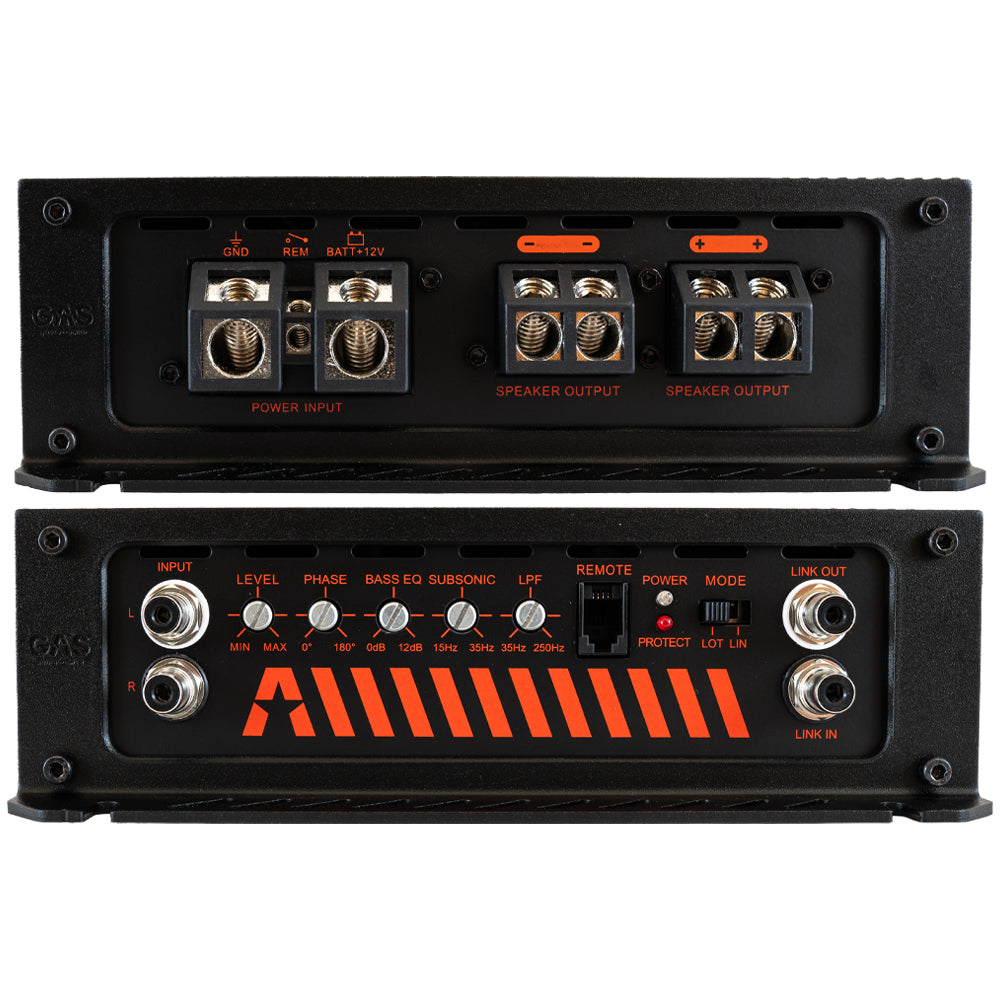 GAS MAX A2-2500.1DL er en kraftfuld monoblock, der kan levere 2500W RMS i 1 Ohm og er særligt udviklet til entusiaster! Her har GAS haft en vision om en serie sluttrinn med nøje udvalgte komponenter, der både lyder fantastisk og kan levere rigeligt med strøm. Et trin, der er fremragende til både SPL- og SQ/SQL-lydbyggerier.